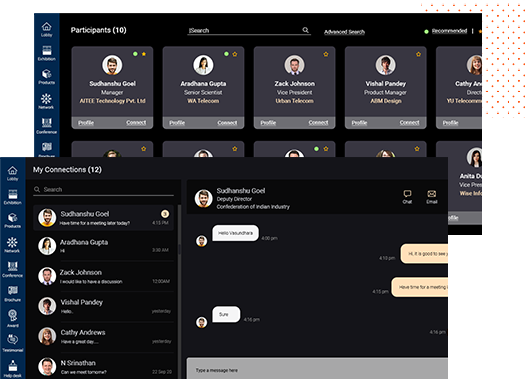 Networking opportunities like never before. Find the right people to connect with over chat, mail, video meetings.
